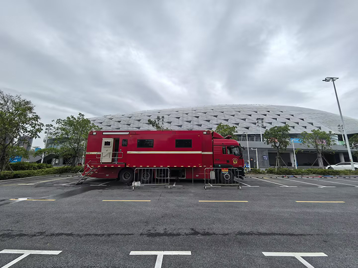 消防通信指揮車也在活動(dòng)區(qū)域默默守護(hù)。車內(nèi)集成融合通信、視頻會(huì)商、綜合調(diào)度等多個(gè)子系統(tǒng),通過(guò)衛(wèi)星通信設(shè)備以及車內(nèi)多功能操作平臺(tái),指揮人員可以實(shí)時(shí)感知現(xiàn)場(chǎng),將賽場(chǎng)及周邊關(guān)鍵區(qū)域的實(shí)時(shí)高清畫面回傳至指揮中心。通過(guò)衛(wèi)星鏈路,與后方指揮中心乃至異地專家進(jìn)行無(wú)縫視頻會(huì)議,實(shí)現(xiàn)前后方快速聯(lián)動(dòng)決策。一旦現(xiàn)場(chǎng)出現(xiàn)任何突發(fā)狀況,這輛車就能立即成為最前沿的指揮所,極大提升消防響應(yīng)速度和處置效率。
