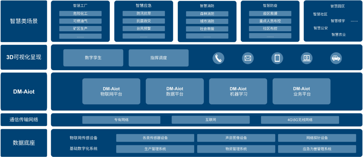 迪馬打造的DM-Aiot智能中樞平臺(tái)依托于豐富的能力平臺(tái)組件及城市數(shù)據(jù)資源,以安全業(yè)務(wù)訴求為驅(qū)使,通過(guò)AI終端、物聯(lián)網(wǎng)傳感設(shè)備、基礎(chǔ)通信設(shè)施等智能硬件產(chǎn)品實(shí)時(shí)采集數(shù)據(jù),從數(shù)據(jù)中獲取關(guān)聯(lián)性形成業(yè)務(wù)情景模型,實(shí)現(xiàn)人、設(shè)備、場(chǎng)景的輔助決策及智能化聯(lián)動(dòng)處置,實(shí)現(xiàn)全新基于大數(shù)據(jù)立體化運(yùn)營(yíng)服務(wù)的支撐城市全智慧場(chǎng)景的能力平臺(tái)。