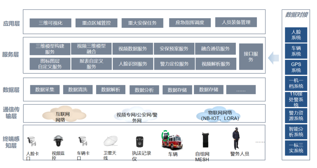智慧公安三維實(shí)景立體防控平臺(tái)是綜合運(yùn)用物聯(lián)網(wǎng)、云計(jì)算、大數(shù)據(jù)、AI、融合通信等前沿技術(shù)應(yīng)用,以城市信息數(shù)據(jù)為基礎(chǔ),依托于三維實(shí)景復(fù)刻的場(chǎng)景模式,對(duì)多維數(shù)據(jù)進(jìn)行融合、治理、分析和使能,實(shí)現(xiàn)對(duì)實(shí)有人口的精準(zhǔn)管理、對(duì)安全隱患的精準(zhǔn)識(shí)別、對(duì)重點(diǎn)人員的精準(zhǔn)管控、對(duì)實(shí)時(shí)警情的精準(zhǔn)處置,為公安基層開(kāi)展工作提供有力支撐,全面提升群眾安全感。