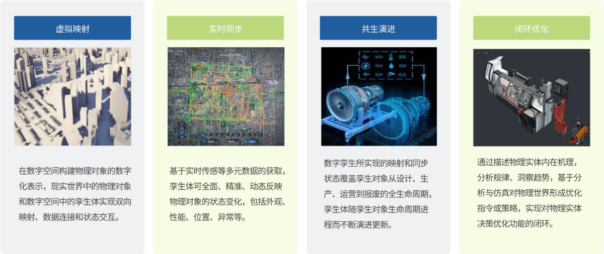 數(shù)字孿生是一種數(shù)字化理念和技術(shù)手段,它以數(shù)據(jù)與模型的集成融合為基礎(chǔ)與核心,通過在數(shù)字空間實時構(gòu)建物理對象的精準(zhǔn)數(shù)字化映射,基于數(shù)據(jù)整合與分析預(yù)測來模擬、驗證、預(yù)測、控制物理實體全生命周期過程,最終形成智能決策的優(yōu)化閉環(huán)。其中,面向的物理對象包括實物、行為、過程,構(gòu)建孿生體涉及到的數(shù)據(jù)包括實時傳感數(shù)據(jù)和運行歷史數(shù)據(jù),集成的模型涵蓋物理模型、機理模型和流程模型等。